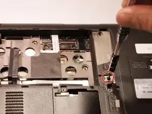 Снимите один винт Phillips #1 длиной 5 мм, фиксирующий оптический привод.
