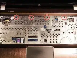 Снимите четыре винта Phillips #0 длиной 4 мм в верхней области под клавиатурой.