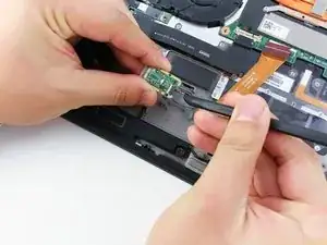 Отключите шлейф от сканера отпечатков пальцев, вытащив кабель прямо наружу.