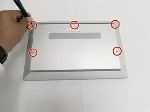 Используйте отвертку Philips #1 для удаления пяти винтов на задней крышке ноутбука.