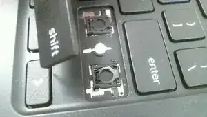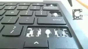 Любые повреждения в этих областях не позволят клавише оставаться прикрепленной к пластиковому кронштейну, который находится под клавишей.