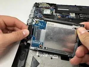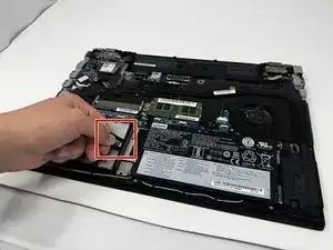 В этом руководстве показано, как заменить SSD для Lenovo ThinkPad T570. Убедитесь, что устройство выключено, а батарея удалена с нижней стороны компьютера. К SSD подключены деликатные детали, поэтому будьте аккуратны и выполняйте движения осторожно, чтобы не повредить или не сместить элементы под ним.