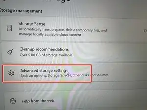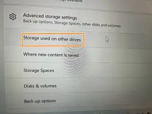 Включите устройство и откройте расширенные настройки хранилища.