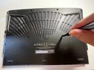 Используйте инструмент для открытия, чтобы аккуратно разъединить переднюю и заднюю панели. Обходите вокруг периметра ноутбука и отстегивайте защелки, удерживающие его вместе.