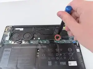 Удалите винт длиной 3,4 мм с крышки SSD с помощью отвертки Phillips #000.