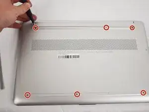 Используйте крестовую отвертку, чтобы удалить восемь винтов по 3 мм (включая 2 винта, которые не были под резинками), удерживающих нижнюю крышку.