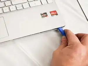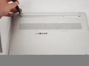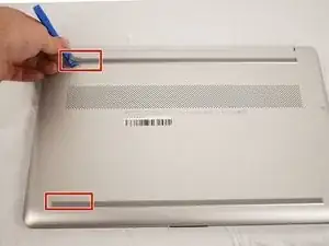 Вставьте инструмент для открывания в шов между краем нижней крышки и корпусом.