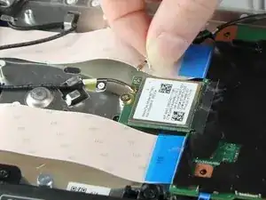 Проведите инструментом для открытия по краям задней крышки, чтобы снять ее, открывая компоненты ноутбука под ней.