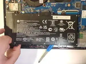 Чуть приподнимите батарею и потяните её, чтобы отключить от разъёма на материнской плате.