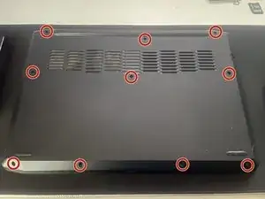 Затем с помощью крестовой отвертки удалите 10 винтов с задней панели компьютера.