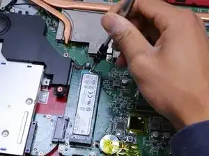 Удалите один винт Филлипс #1 размером 5.5 мм, прикрепляющий SSD к ноутбуку.