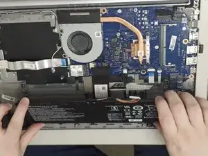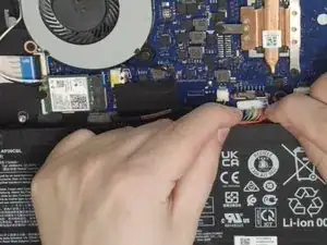 Используя ногти, сожмите разъём батареи по бокам и потяните его прямо назад, пока он не выйдет из гнезда.