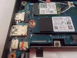Удалите один винт с SSD с помощью отвертки Phillips #1.