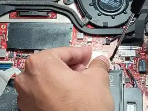 Отключите разъём батареи, поднимите его вверх и отведите от платы.