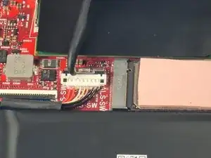 Сдвиньте защёлку разъёма батареи вверх, чтобы освободить кабель батареи для отсоединения.