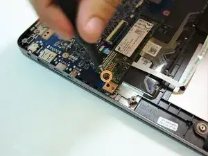 Вам может понадобиться отодвинуть черную ленту на правом нижнем винте разъема материнской платы. Эта лента не необходима для функционирования устройства и может быть выброшена, если это необходимо.