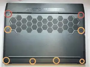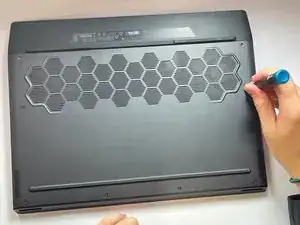 Перед началом процесса полностью выключите ноутбук, чтобы избежать любых потенциальных проблем во время или после замены. Кроме того, хорошей практикой является заземление, прикоснувшись к металлической поверхности перед тем, как трогать внутренние электроника, чтобы рассеять статическое электричество.