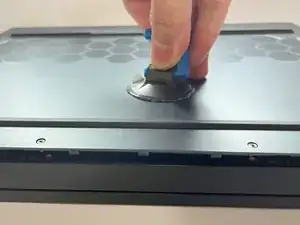 Поднимите вакуумную чашку, чтобы отстегнуть заднюю панель от корпуса ноутбука.