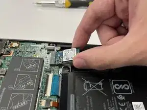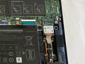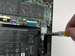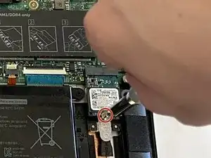 Используйте крестовую отвёртку Phillips #00, чтобы выкрутить один винт, фиксирующий NVMe-накопитель.
