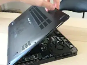 После снятия крышки слот для SSD находится внизу справа, прямо рядом с аккумулятором.
