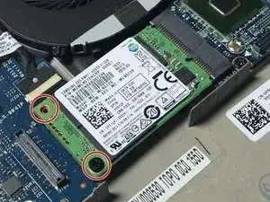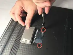 С помощью отвертки #0 Phillips открутите два винта длиной 2.5 мм, которые фиксируют SSD к корпусу.