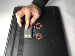 Удалите два винта #0 Phillips длиной 3 мм под пластиковой вкладкой.