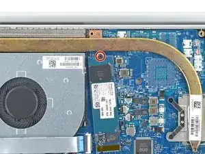 Используйте крестовую отвёртку, чтобы выкрутить винт длиной 3,4 мм, закрепляющий SSD.
