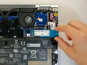 Аккуратно сдвиньте SSD вправо и потяните его, чтобы вынуть из позиции на материнской плате.