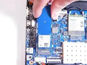 Используйте отвертку Phillips #0 для удаления винта размером 3 мм, удерживающего SSD на месте.