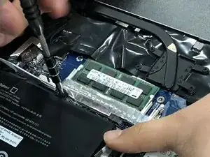 Удалите один винт размером 2 мм от SSD с помощью отвертки типа Phillips #0.