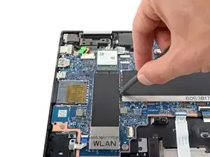 Используйте плоский конец лопатки, чтобы приподнять по краям металлический щит, закрывающий SSD.