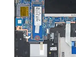 Отверткой Phillips выкрутите винт длиной 2,5 мм, закрепляющий SSD.
