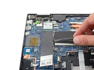 В некоторых моделях разъём батареи может быть закрыт лентой. Используйте тупые пинцеты или пальцы, чтобы поддеть и снять её перед извлечением батареи.