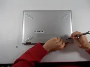 Переверните устройство так, чтобы задняя панель ноутбука была сверху.