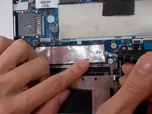 Используйте отвертку Phillips #00, чтобы удалить винт длиной 5 мм, который фиксирует SSD.