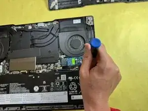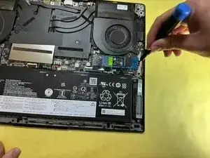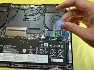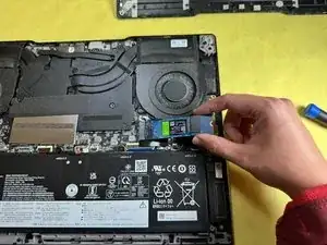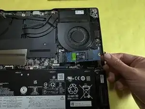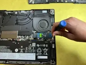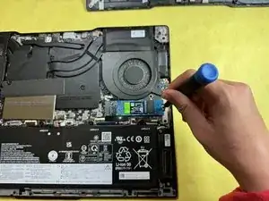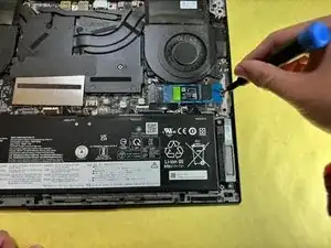 Отверткой Phillips #0 отвинтите винт M2 x L3.5, крепящий SSD.