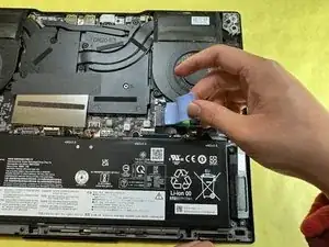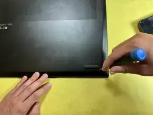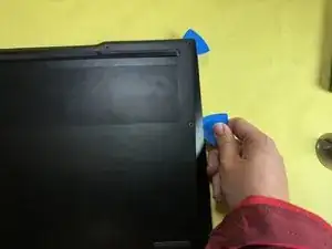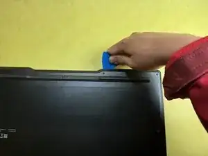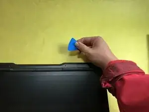 Вставьте медиатор (пик) между нижней крышкой и корпусом ноутбука.