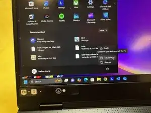 Выключите ноутбук и убедитесь, что он отключён от сети.