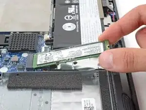 Отвинтите крестовой отверткой винт длиной 3.9 мм, фиксирующий SSD.