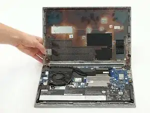 Работая от петель к передней части, аккуратно отожмите заднюю крышку от корпуса ноутбука.