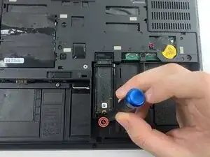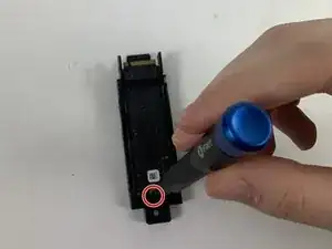 Удалите винт Phillips #00 длиной 4,4 мм, крепящий SSD.
