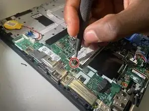 Используйте отвертку Phillips #1, чтобы удалить винт Phillips 3.7 мм, фиксирующий SSD.