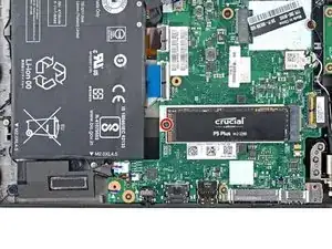 Используйте отвертку Phillips #1, чтобы снять винт длиной 3.7 мм, удерживающий SSD.