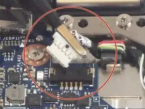 Используйте пластиковый инструмент для открытия, чтобы аккуратно отнять кабель экрана от материнской платы.