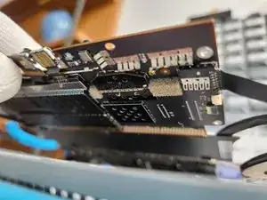 Будьте очень осторожны: необходимо слегка приподнять плату, затем получить доступ к фиксации плоского кабеля и отжать её вверх с помощью пластикового лопатки.