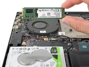 Вытяните SSD прямо из его гнезда и удалите его.