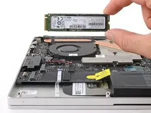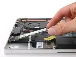 Используйте крестовую отвертку, чтобы выкрутить винт длиной 3.1 мм, фиксирующий SSD.