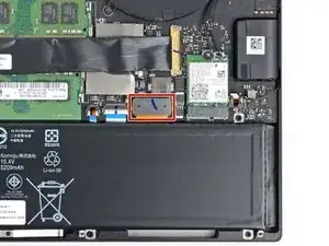 Используйте крестовую отвёртку, чтобы вынуть винт длиной 3,8 мм, фиксирующий SSD.