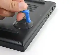 Прикрепите присоску к середине правого края задней крышки, между нижней резиновой ножкой и средними винтами.