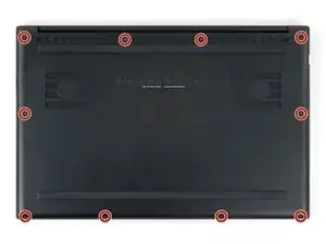 Используйте отвёртку Torx T5, чтобы вынуть десять винтов длиной 3,8 мм, фиксирующих заднюю крышку.